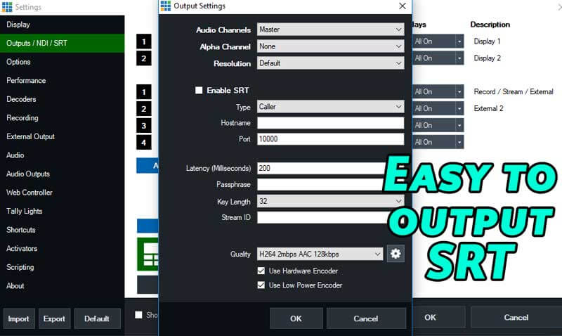 O vMix implementou INPUT e OUTPUT do SRT. Você também pode utilizar a codificação e decodificação de hardware.