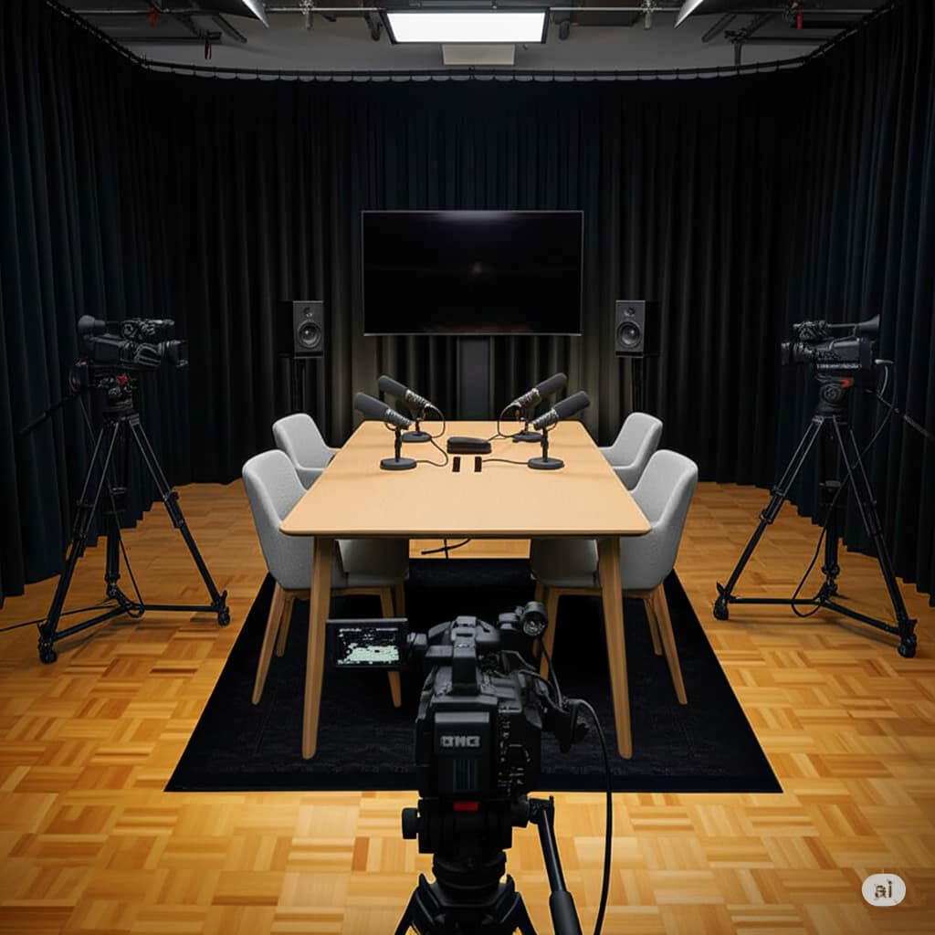 - Câmeras de vídeo de qualidade profissional, com opções de múltiplas câmeras para produções de vídeo para podcast dinâmicas.